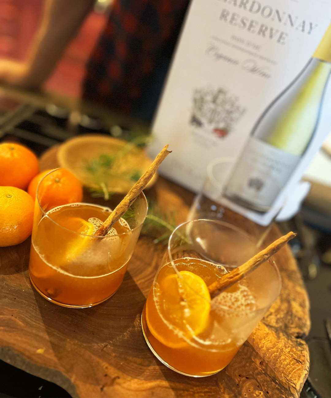 - Servera vinet i dina finaste cocktailglas med clementinskivor och kanelstång.